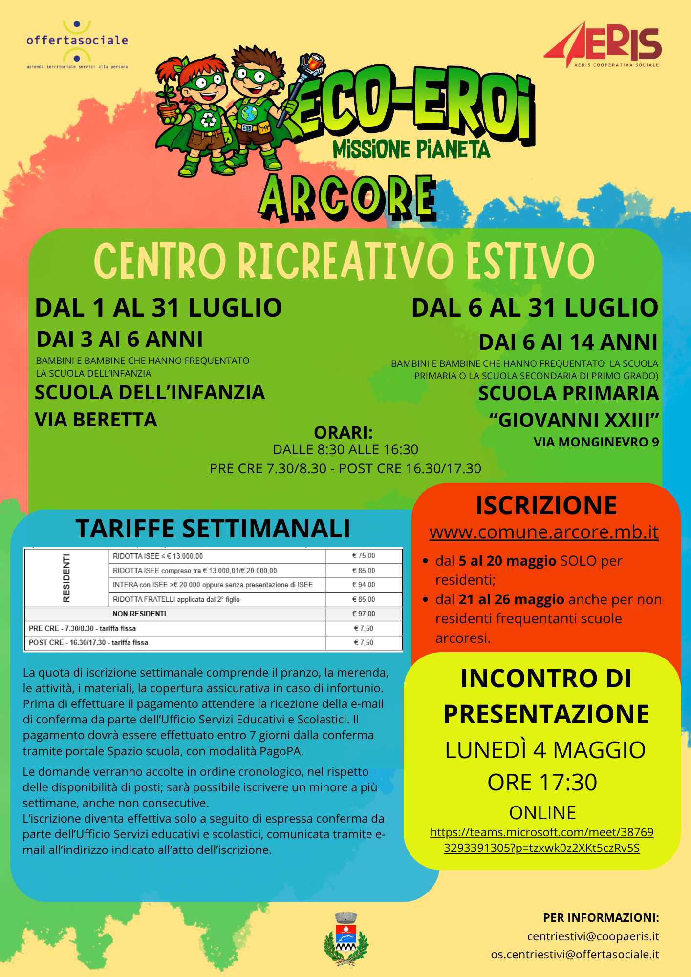 CRE INFANZIA 3 – 6 anni presso scuola infanzia Beretta dal 1° al 31 luglio