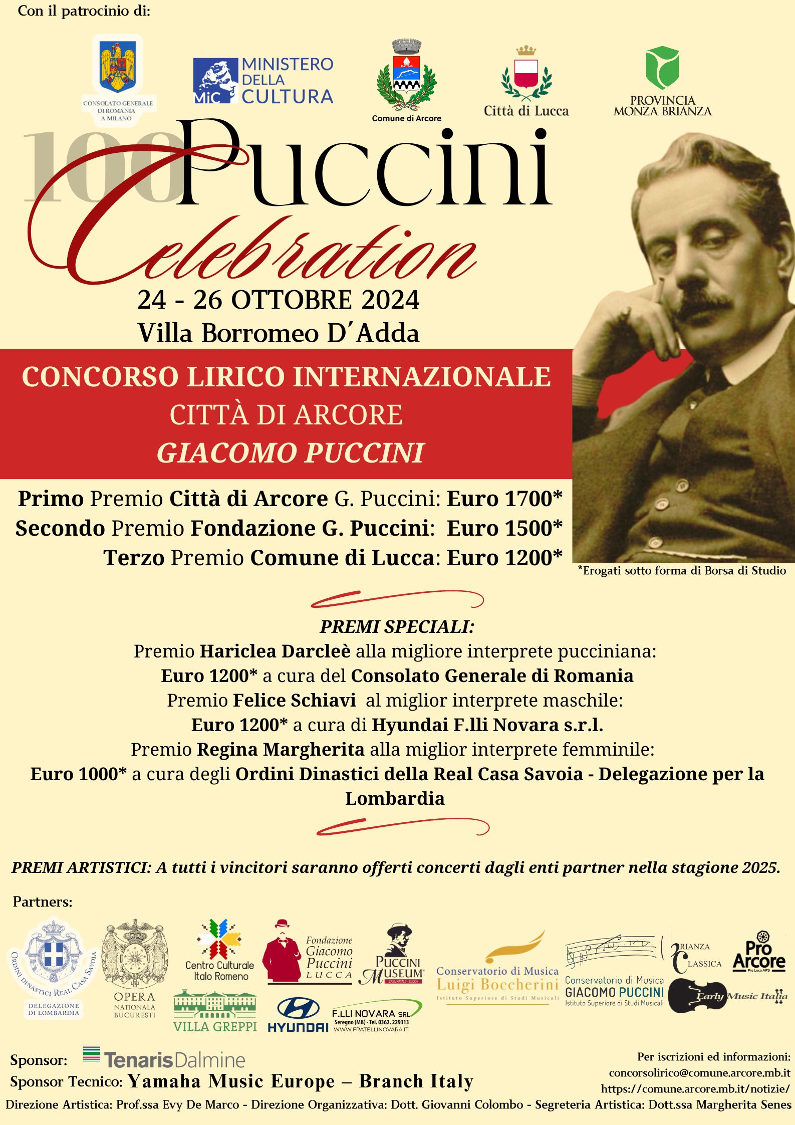 Il Concorso internazionale per giovani cantanti lirici, è promosso e organizzato dall’assessorato alla Cultura del Comune di Arcore, nell’ambito della programmazione quinquennale detta “Arcore città della Musica”, volta alla promozione dello studio e dell’ascolto musicale, e quest’anno sarà dedicata a Giacomo Puccini, nel centenario della morte.