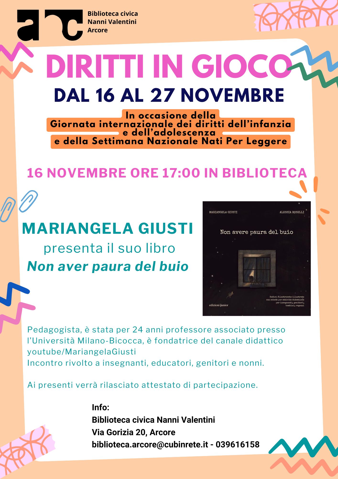 L’incontro è rivolto a insegnanti, educatori, genitori e nonni e a tutti coloro che hanno a cuore l’educazione dei bambini. Ai presenti verrà rilasciato l’attestato di partecipazione.