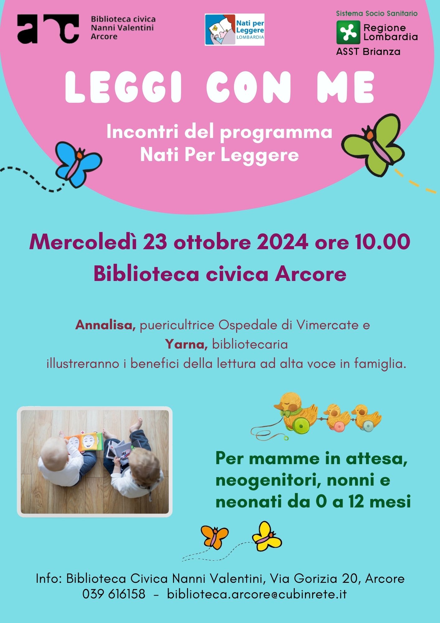Annalisa, puericultrice Ospedale di Vimercate e Yarna, bibliotecaria illustreranno i benefici della lettura ad alta voce in famiglia.