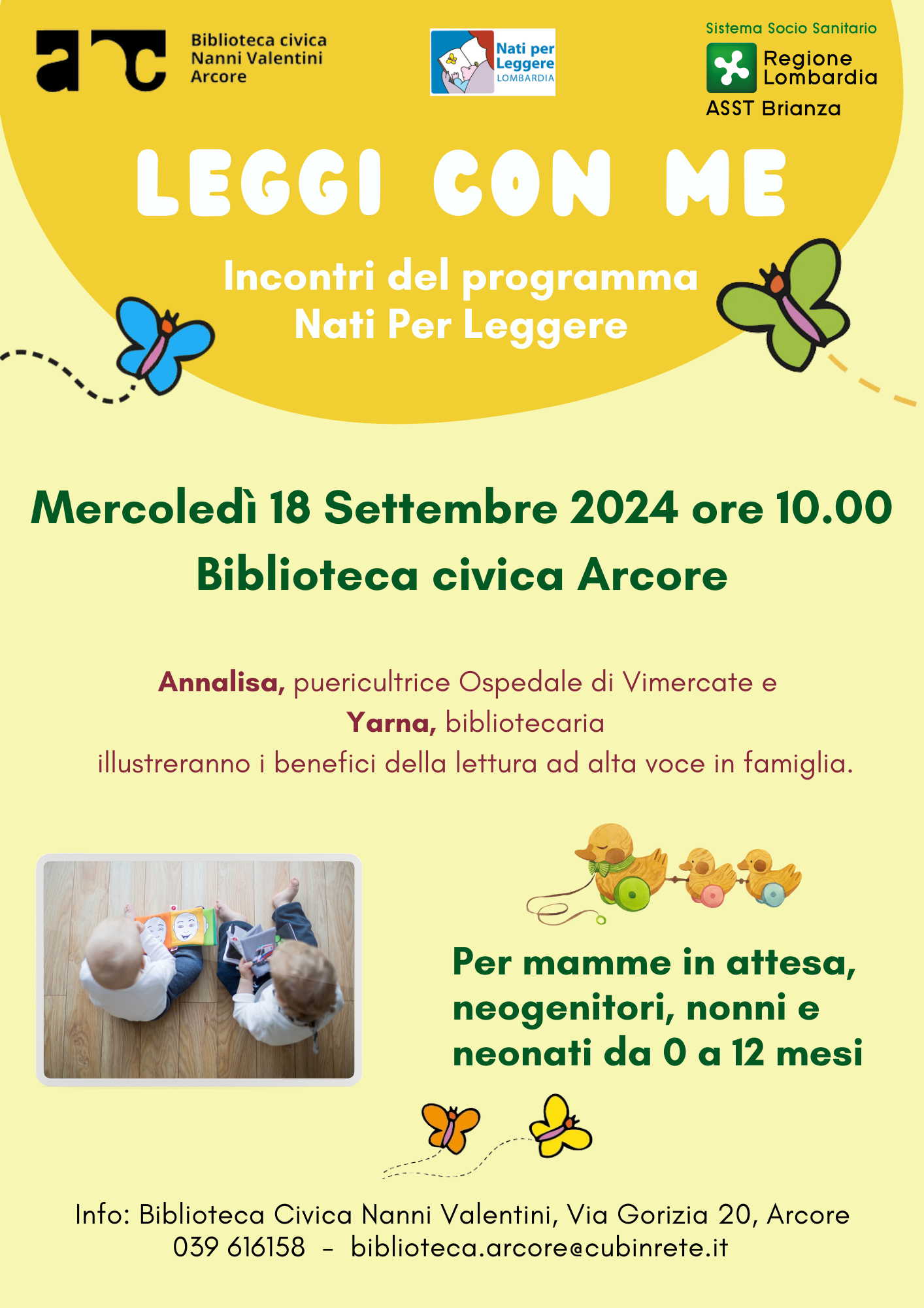 Annalisa, puericultrice Ospedale di Vimercate e Yarna, bibliotecaria illustreranno i benefici della lettura ad alta voce in famiglia.