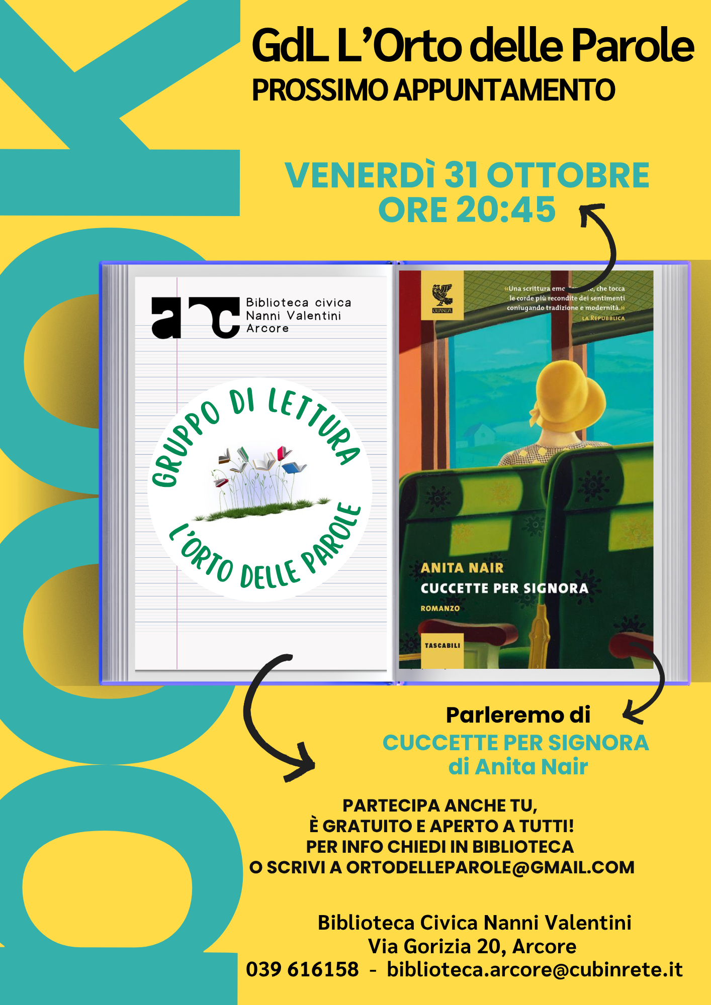 Ti ricordiamo che la partecipazione al gruppo di lettura è libera e gratuita, ti aspettiamo!