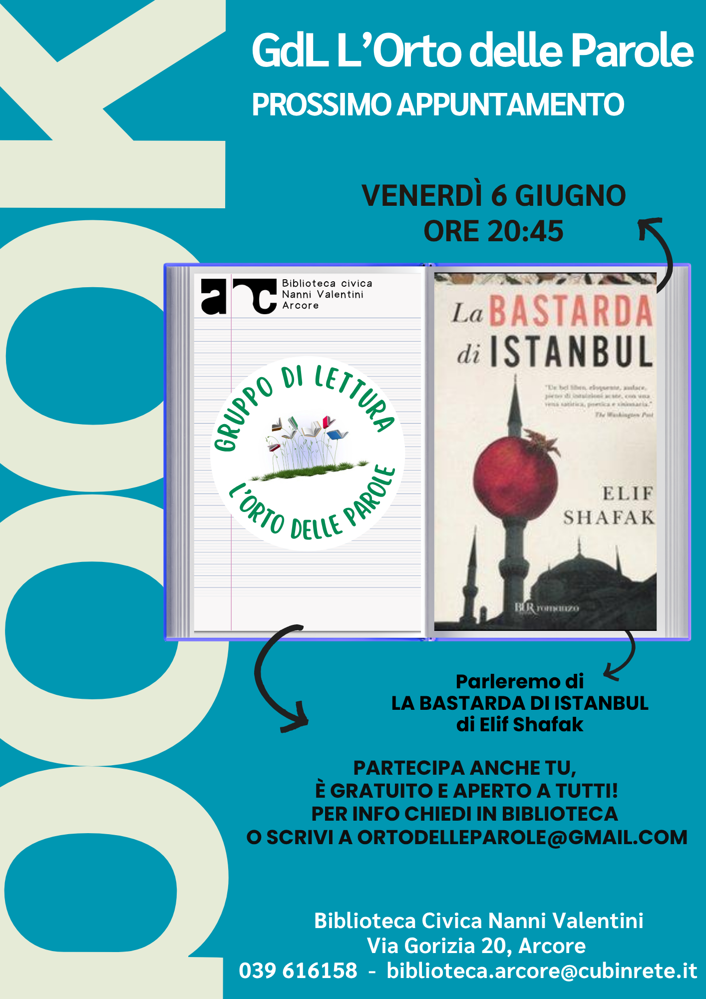 Ti ricordiamo che la partecipazione al gruppo di lettura è libera e gratuita, ti aspettiamo!